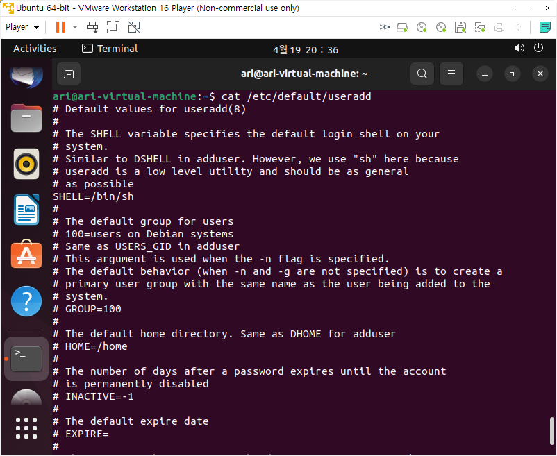 - 사용자 생성 시 사용되는 기본 설정값이 저장된 환경 설정 파일
