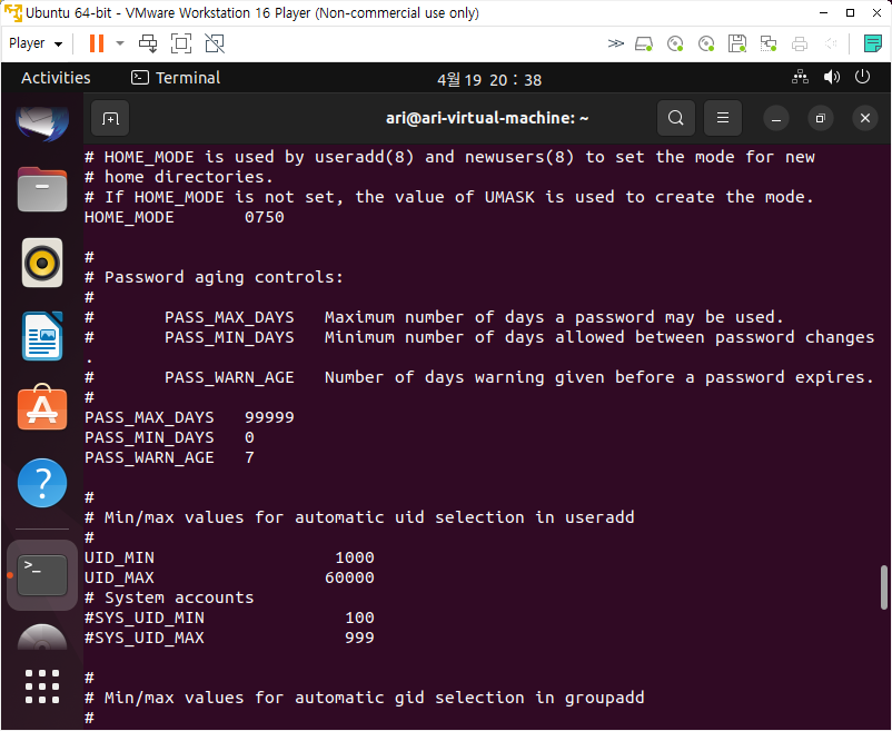 - 패스워드 최대 사용일 : PASS_MAX_DAYS